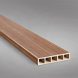 Furniture profiles are often made of materials such as medium-density fiberboard (MDF), particle board, plastics such as PP and PVC, and more recently combinations of plastic and wood, known as wood plastic composites (WPC). They can be used as furniture finishing or edge strips or as panels for interior design. Profiles are given a decorative finish in the wrapping process; the wrapping film is continuously coated with adhesive in the wrapping machine and evenly applied to the profile by pressure rollers.
