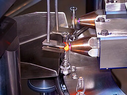 In this process, the plasma energy is targeted to achieve aseptic closure of the glass vials. Since the plasma does not burn in the conventional sense (combustion, oxidation), no exhaust or soot forms, and there is thus no contamination by flame reaction products.