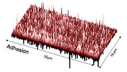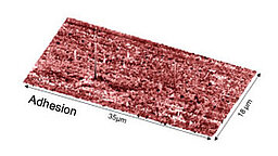 Adhesion distribution on aluminum without plasma treatment. Interaction with the probe tip: the surface is covered with oily impurities.