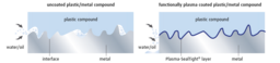 Plasma-SealTight® bonds to the metal (stainless steel, copper, aluminum, steel) at molecular level and at the same time generates organic compounds (functional groups) which ensure a strong adhesive bond between the metal and the plastic.