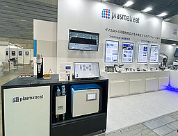 ブースでは、アルミやステンレスの金属サンプルに加え、プラスチックや複合材などの多様な基材のテストピースに対してその場でプラズマ処理を施し、ブースにお立ち寄りいただいた方々に、洗浄および表面活性化による濡れ性の改善を瞬時に実現させる処理技術を体感いただきました。